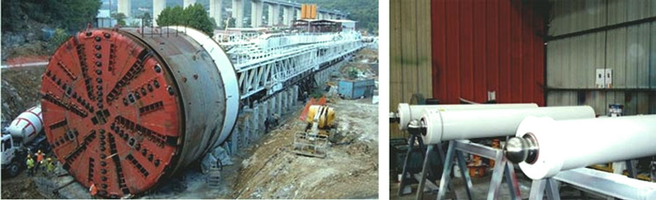 Les tunneliers sont équipés de nombreux vérins conçus pour fonctionner dans des conditions difficiles de chocs et de vibrations. Ceux ci remplissent différentes fonctions